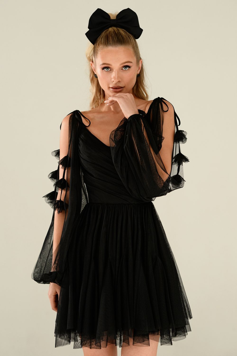 Лаконичные, Коктейльные, Фатиновые, С вырезом на спинке, С длинным рукавом, С рукавами, Декольте, Без корсета, Креп, Коллекция 2025